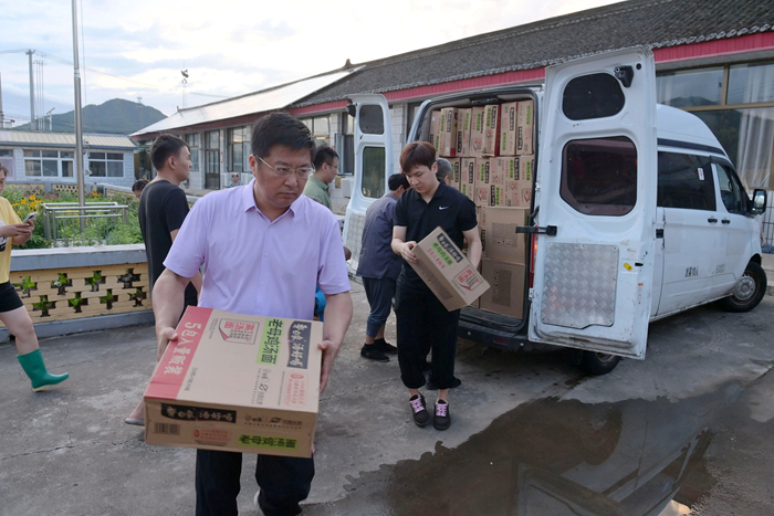 7月29日上午,集團黨委第一時間獲悉密云區(qū)太師屯鎮(zhèn)令公村受災情況后,馬上聯(lián)系駐村第一書記李東,當了解到通往村里部分路段沖毀嚴重,村民急需飲用水和食品后,北京化工集團黨委書記、董事長陳宇親自部署,對救援和慰問方案親自設計,有關集團領導、“兩辦”、財務,組織、黨群等部門緊急開展工作,選派得力人員購買物資,派出車輛,緊急調(diào)度,馳援一線。